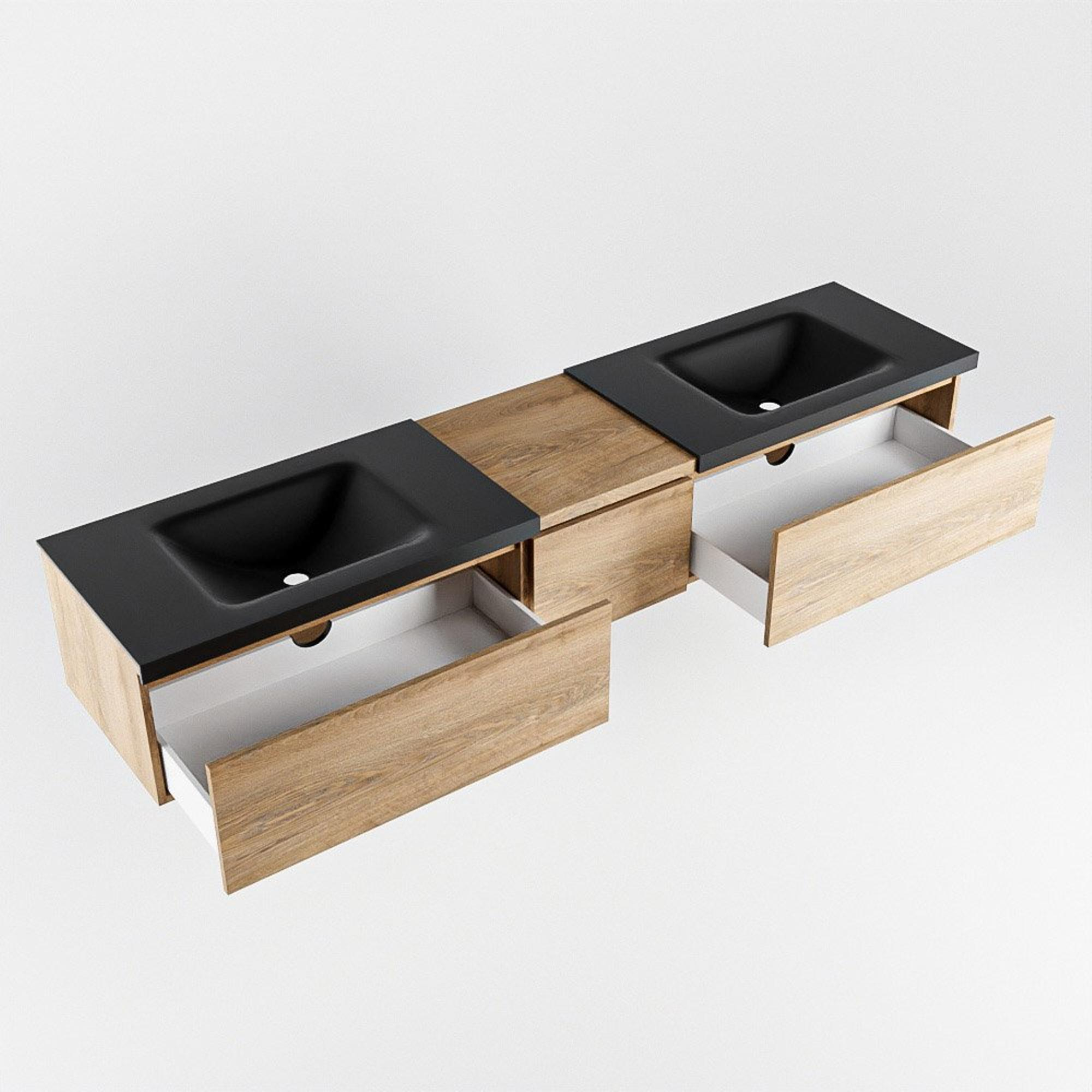 MONDIAZ BUKLA 200cm badmeubel met module 40 kleur Washed Oak met 3 lades. Wastafel CLOUD dubbel 2 kraangaten kleur Urban.