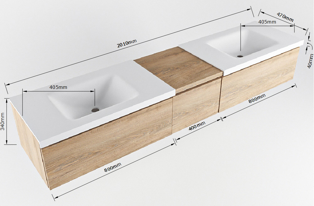 Naast hun esthetische aantrekkingskracht bieden het badmeubel en de wastafel ook praktische voordelen. Met 3 ruime lades in het badmeubel is er voldoende opbergruimte voor al je badkamerbenodigdheden, terwijl de dubbele wastafels van de Wastafel CLOUD zorgen voor extra gemak tijdens drukke ochtenden. De hoogwaardige materialen garanderen duurzaamheid en langdurige prestaties, waardoor deze set een slimme investering is voor elke badkamer.