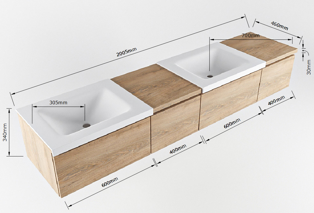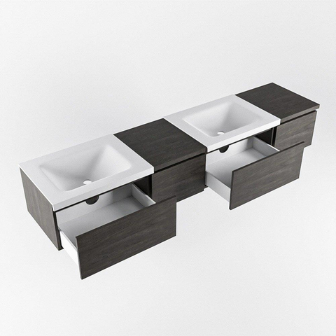 Dankzij het slimme ontwerp is dit badmeubel ideaal voor ruimtes met beperkte afmetingen. De compacte afmetingen van 200cm passen perfect in kleine badkamers zonder in te leveren op functionaliteit. De lades bieden voldoende opbergruimte zonder veel vloeroppervlak in beslag te nemen, waardoor je badkamer netjes en georganiseerd blijft.