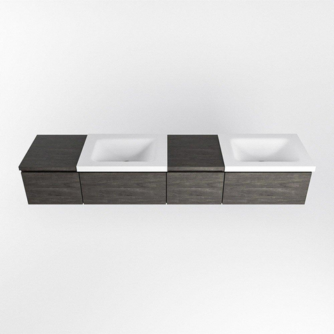MONDIAZ BUKLA 200cm badmeubel met module 40 rechts kleur Dark Brown met 4 lades. Wastafel CLOUD dubbel 0 kraangaten kleur Talc.