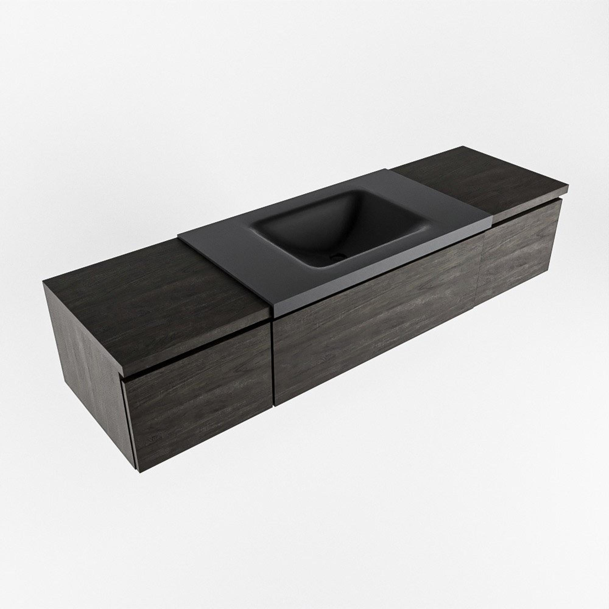 MONDIAZ BUKLA 160cm badmeubel met module 40 kleur Dark Brown met 3 lades. Wastafel CLOUD midden 0 kraangaten kleur Urban.