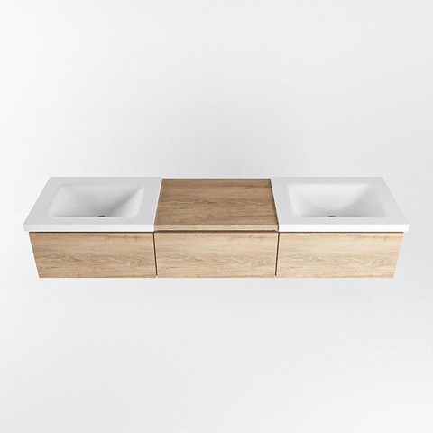 MONDIAZ BUKLA 180cm badmeubel met module 60 kleur Washed Oak met 3 lades. Wastafel CLOUD dubbel 2 kraangaten kleur Talc.