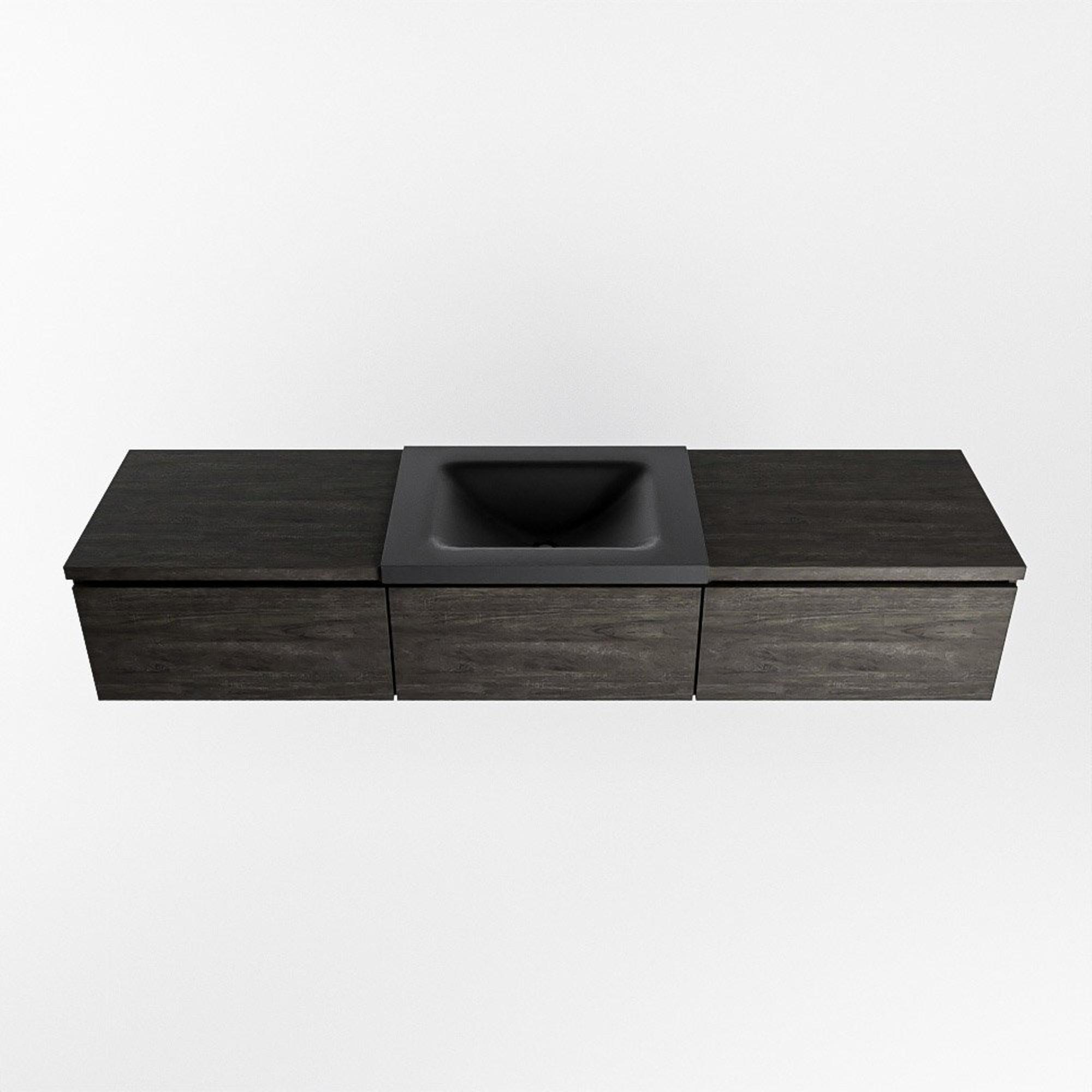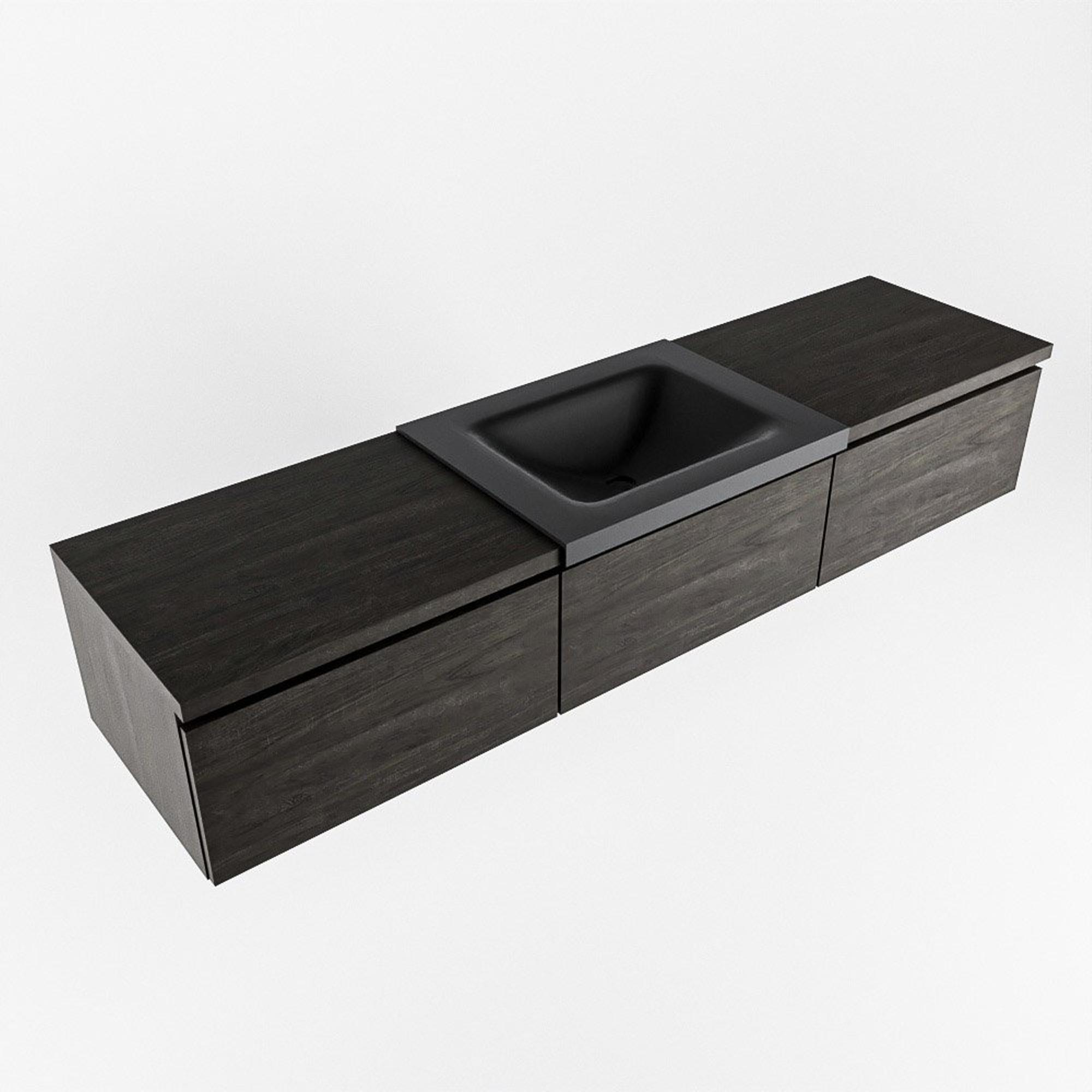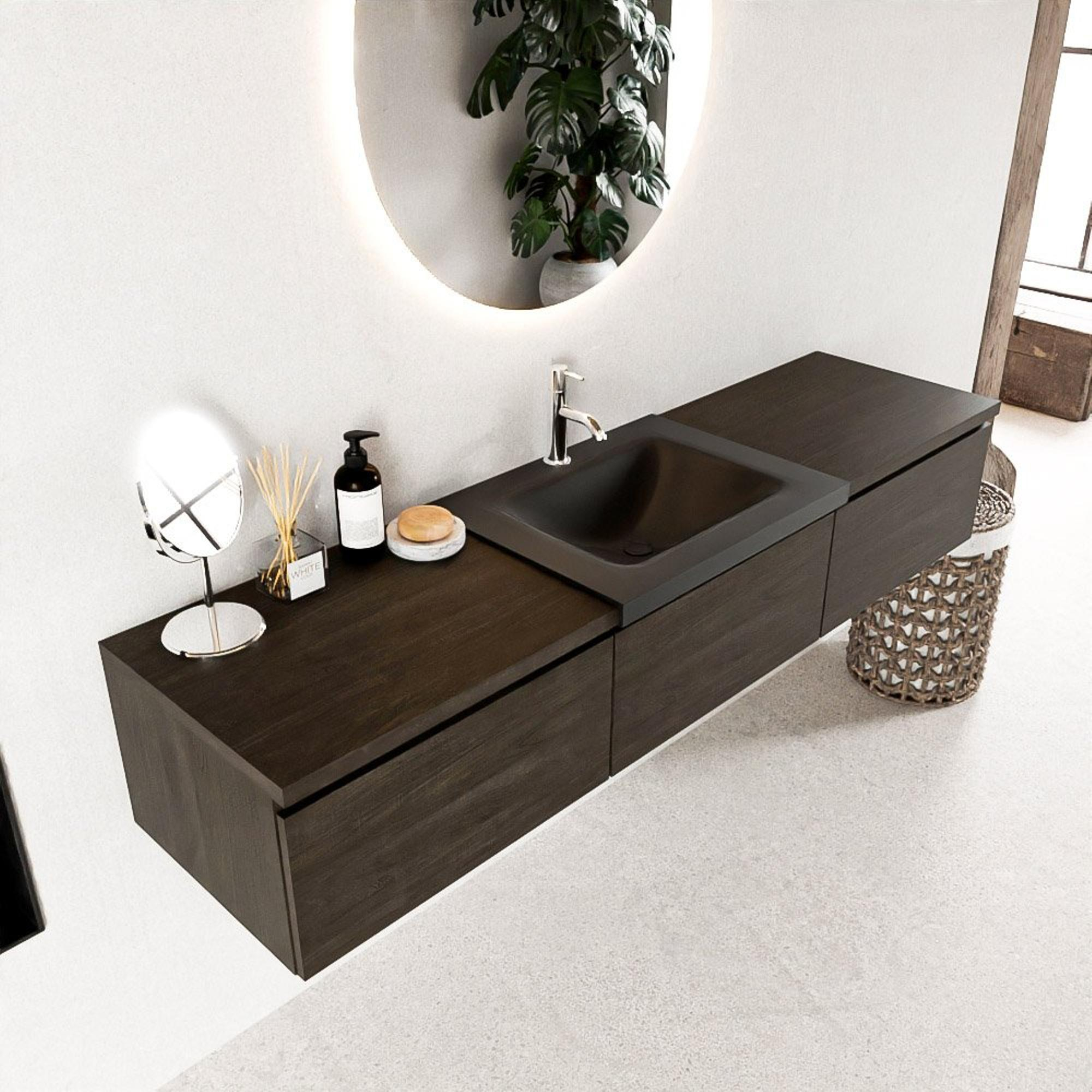 MONDIAZ BUKLA 180cm badmeubel met module 60 kleur Dark Brown met 3 lades. Wastafel CLOUD midden 1 kraangat kleur Urban.