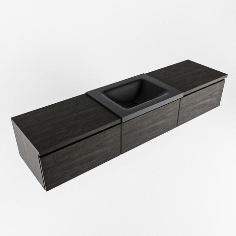 MONDIAZ BUKLA 180cm badmeubel met module 60 kleur Dark Brown met 3 lades. Wastafel CLOUD midden 0 kraangaten kleur Urban.