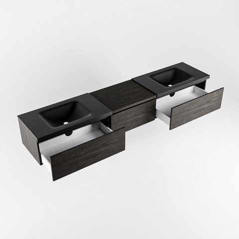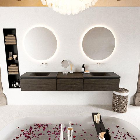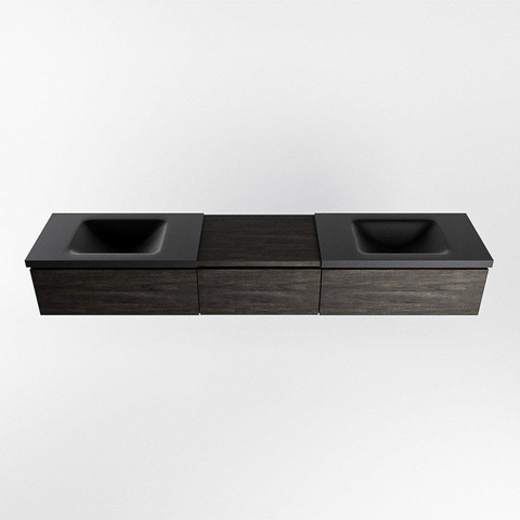 MONDIAZ BUKLA 220cm badmeubel met module 60 kleur Dark Brown met 3 lades. Wastafel CLOUD dubbel 0 kraangaten kleur Urban.