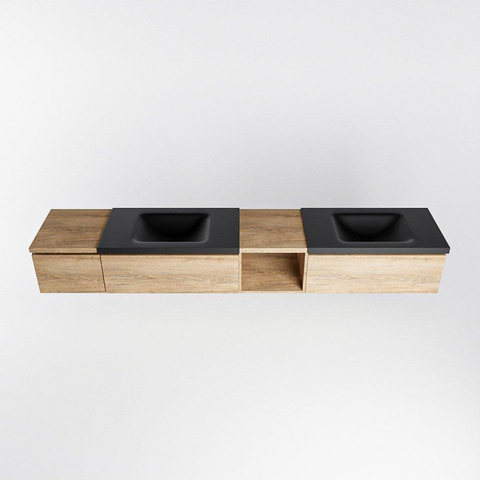 MONDIAZ BUKLA 240cm badmeubel met open module 40 rechts kleur Washed Oak met 3 lades. Wastafel CLOUD dubbel 0 kraangaten kleur Urban.