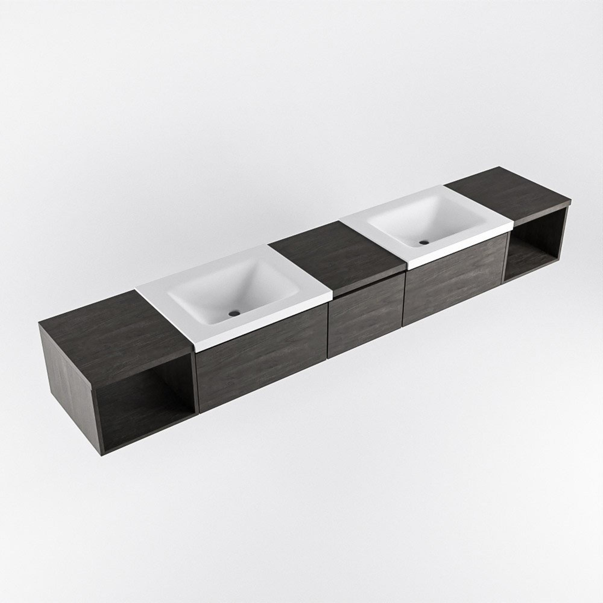 MONDIAZ BUKLA 240cm badmeubel met open module 40 L+R kleur Dark Brown met 3 lades. Wastafel CLOUD dubbel 0 kraangaten kleur Talc.