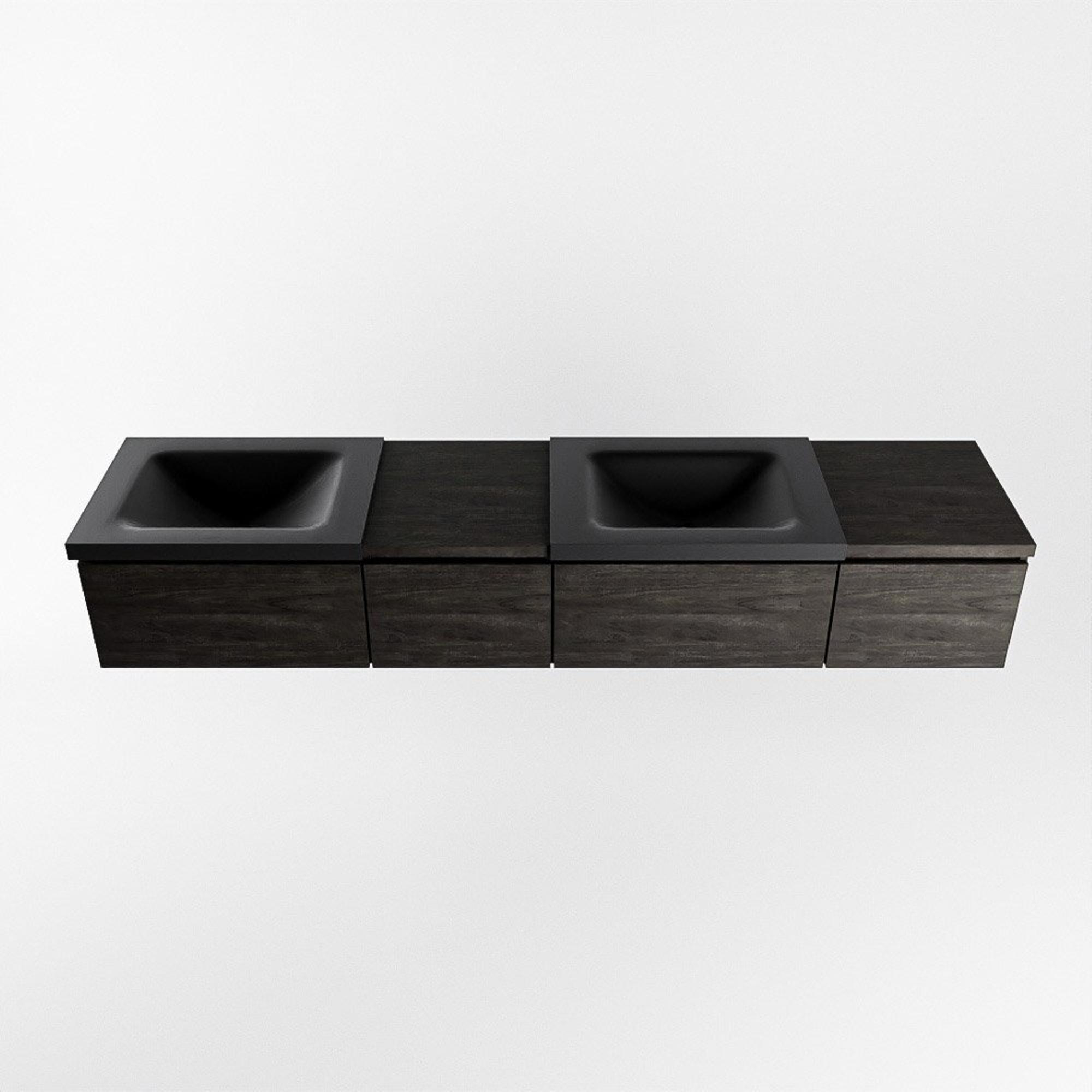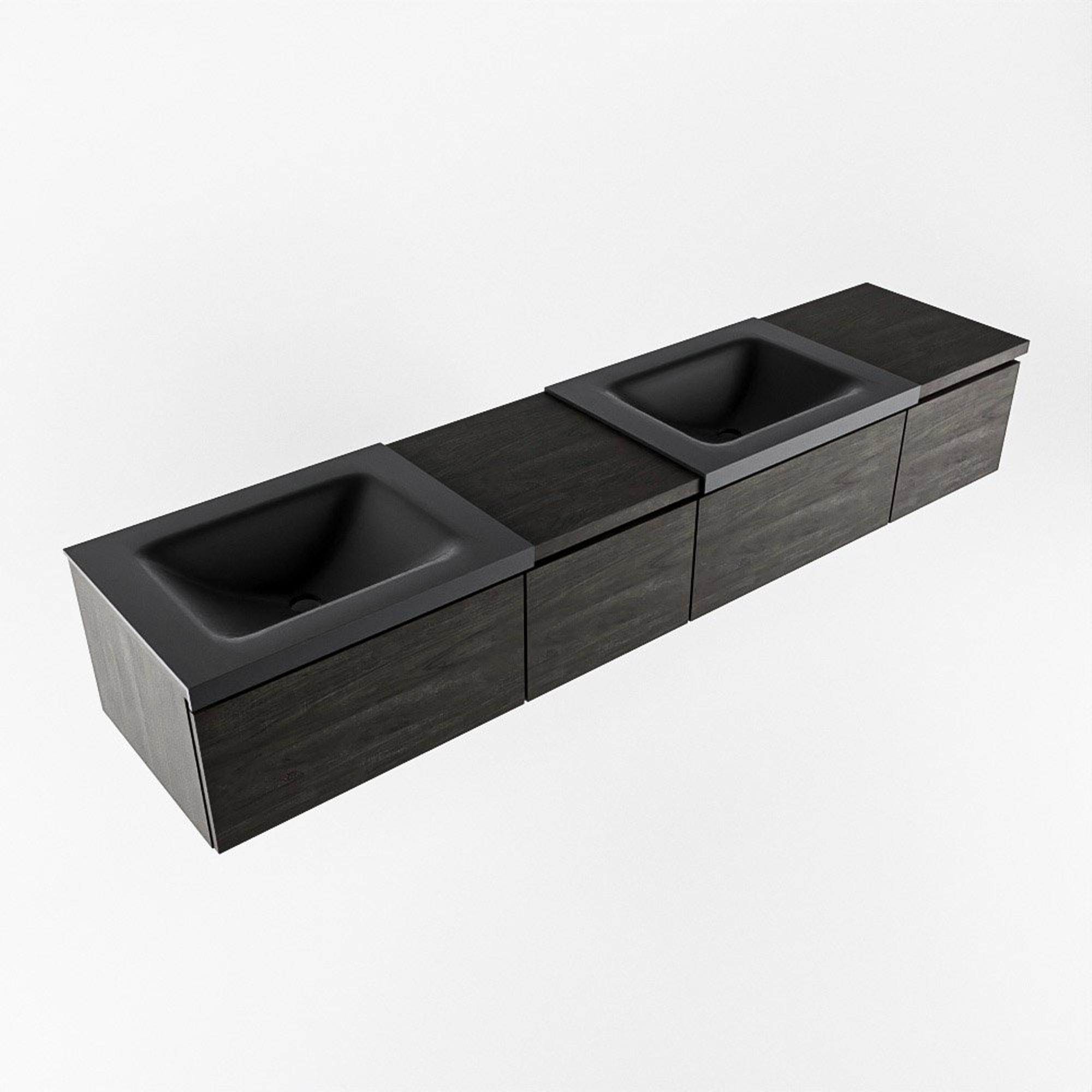 MONDIAZ BUKLA 200cm badmeubel met module 40 links kleur Dark Brown met 4 lades. Wastafel CLOUD dubbel 0 kraangaten kleur Urban.