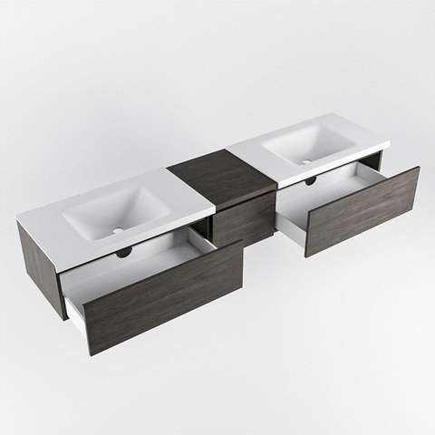 Dit badmeubel met module en dubbele wastafel zijn niet alleen stijlvol, maar ook zeer praktisch in gebruik. De drie lades bieden voldoende ruimte om al jouw badkamerbenodigdheden georganiseerd te houden. De dubbele wastafel met twee kraangaten maakt het gemakkelijk om samen te genieten van het ochtendritueel.