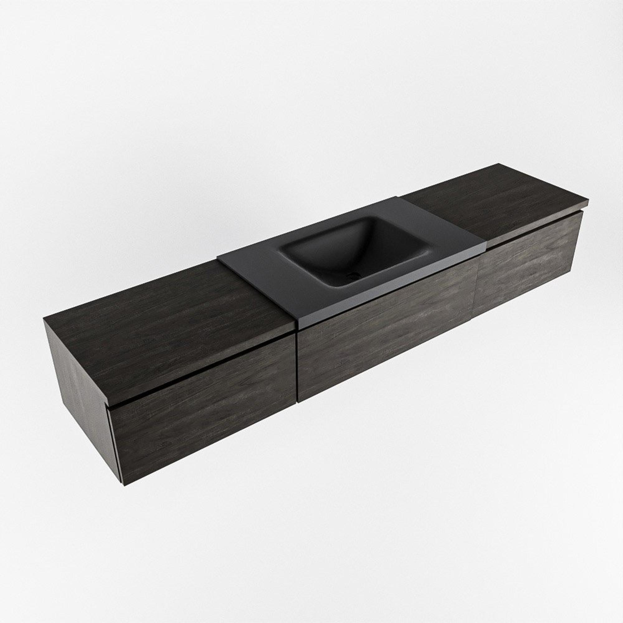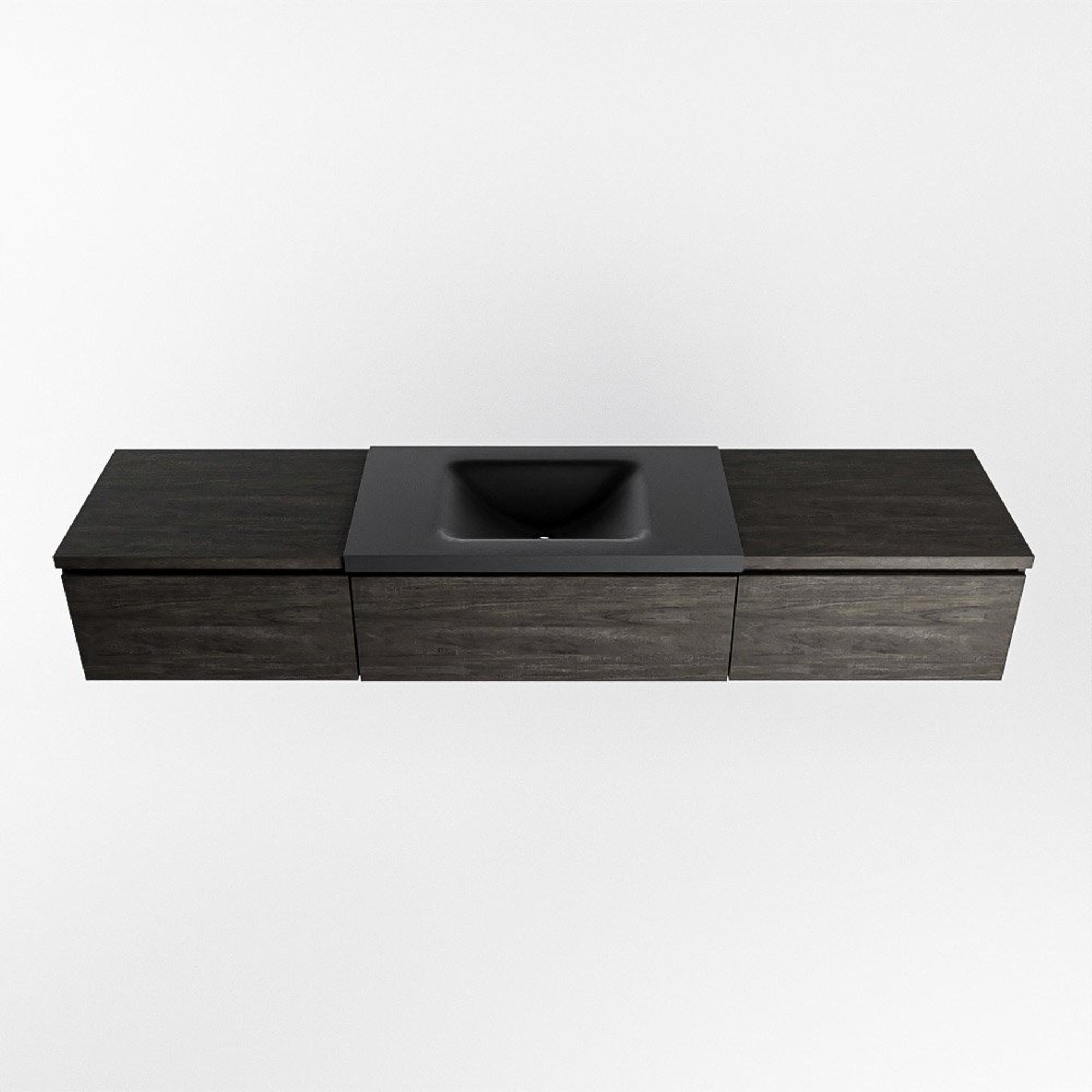 MONDIAZ BUKLA 200cm badmeubel met module 60 kleur Dark Brown met 3 lades. Wastafel CLOUD midden 0 kraangaten kleur Urban.