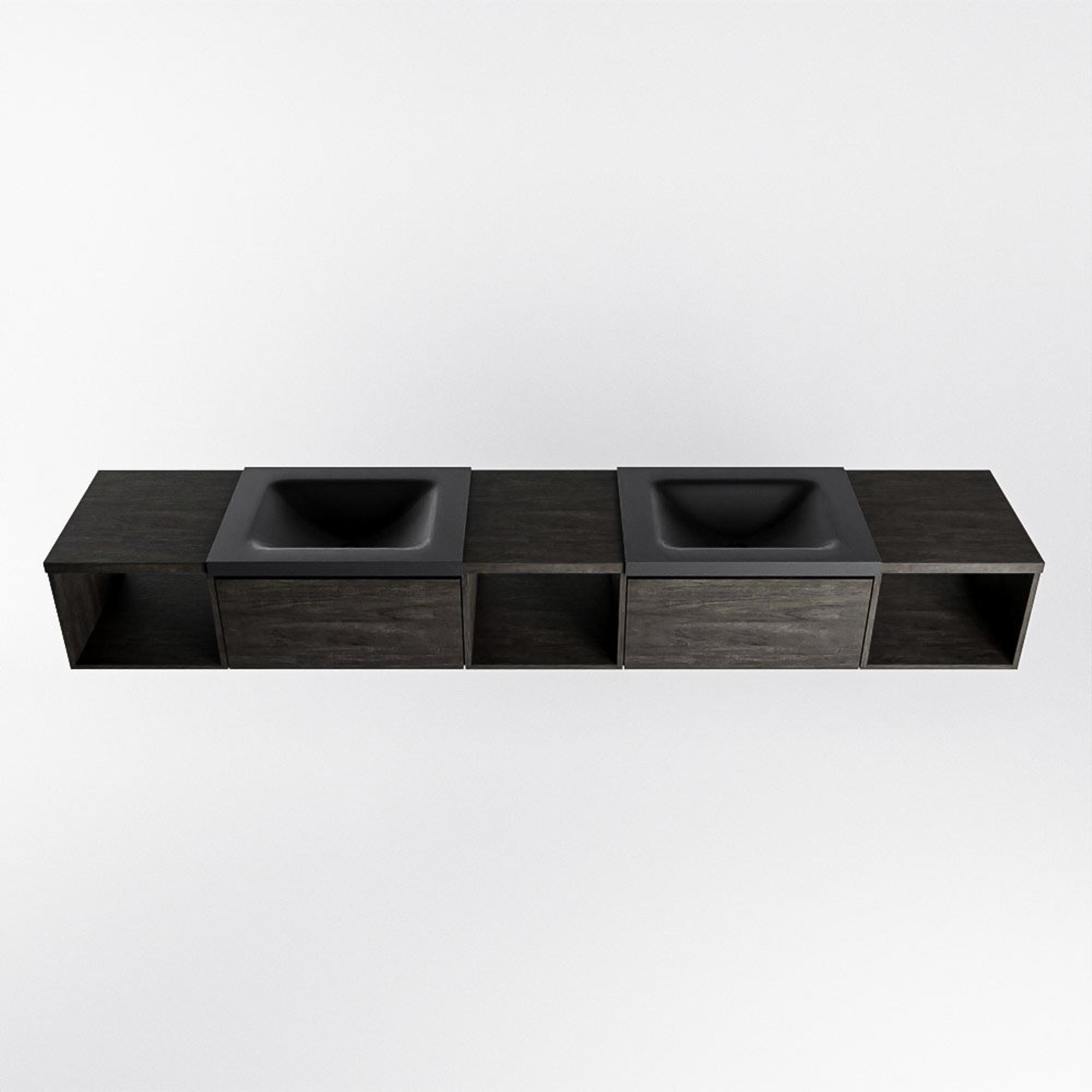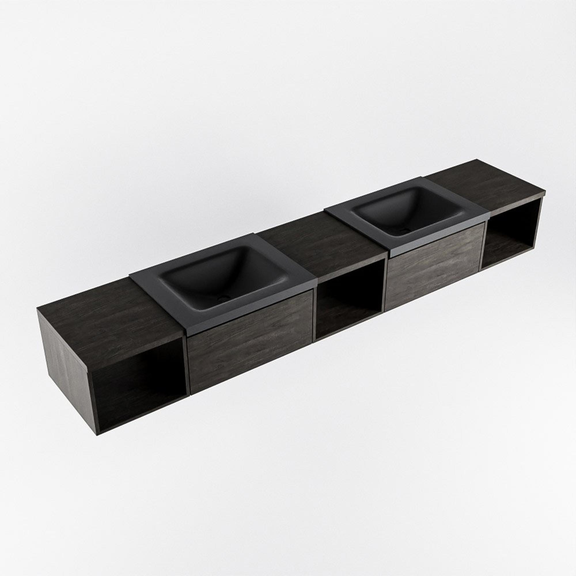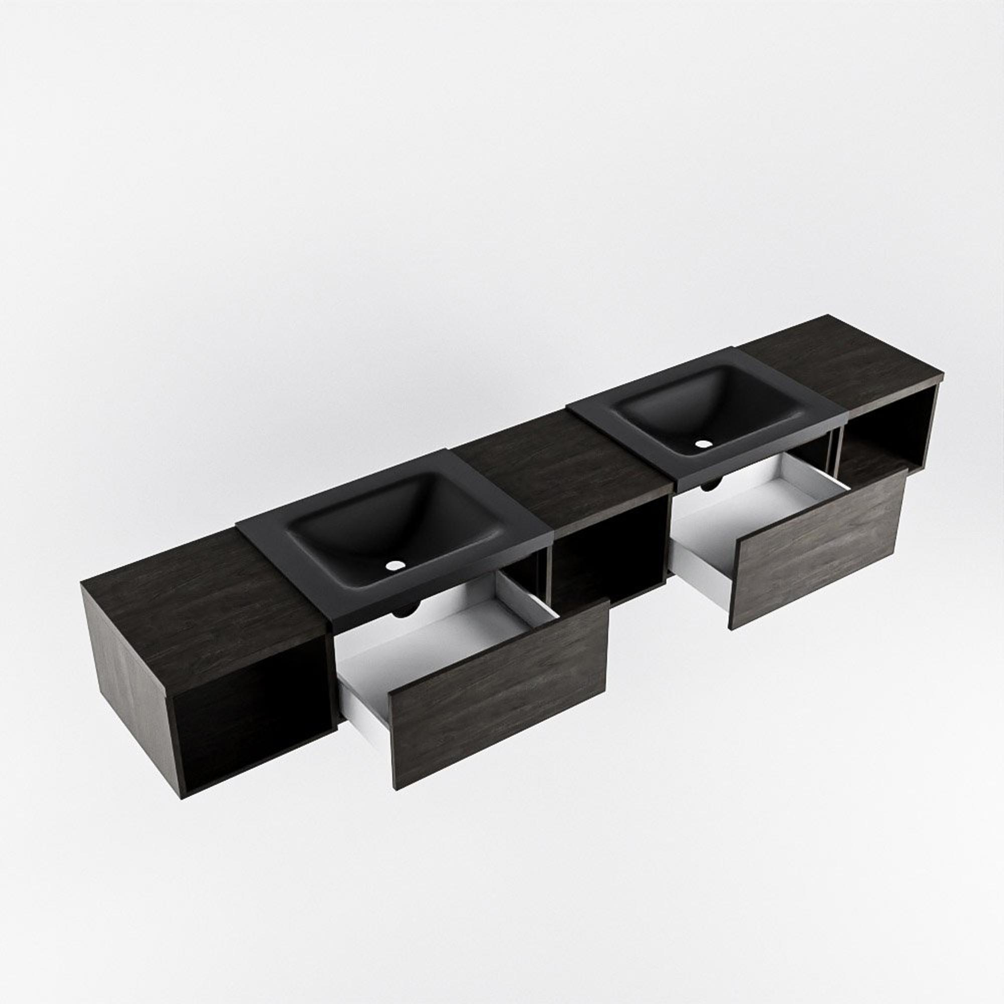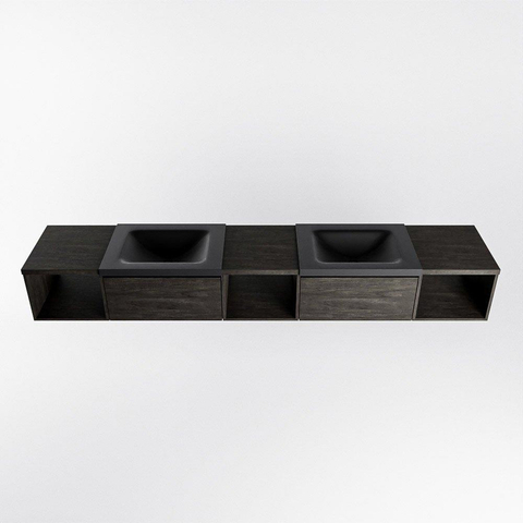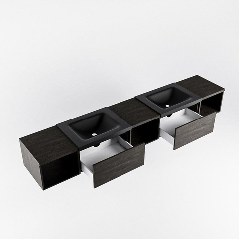 MONDIAZ BUKLA 240cm badmeubel met open module 40 L+M+R kleur Dark Brown met 2 lades. Wastafel CLOUD dubbel 2 kraangaten kleur Urban.