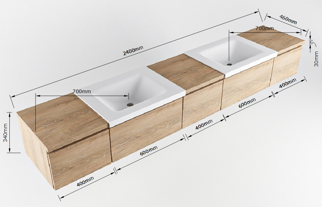 - 240cm badmeubel met open module