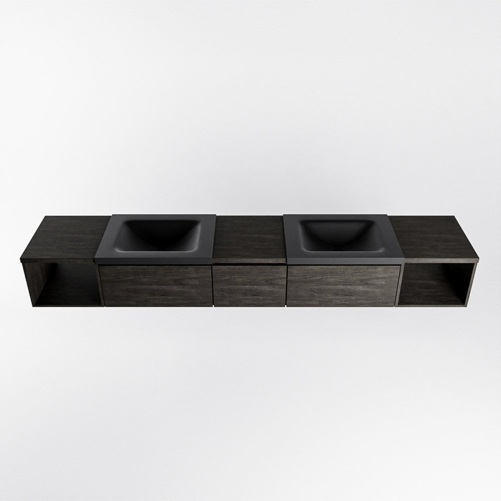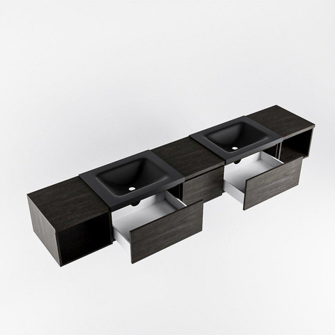 MONDIAZ BUKLA 240cm badmeubel met open module 40 L+R kleur Dark Brown met 3 lades. Wastafel CLOUD dubbel 0 kraangaten kleur Urban.