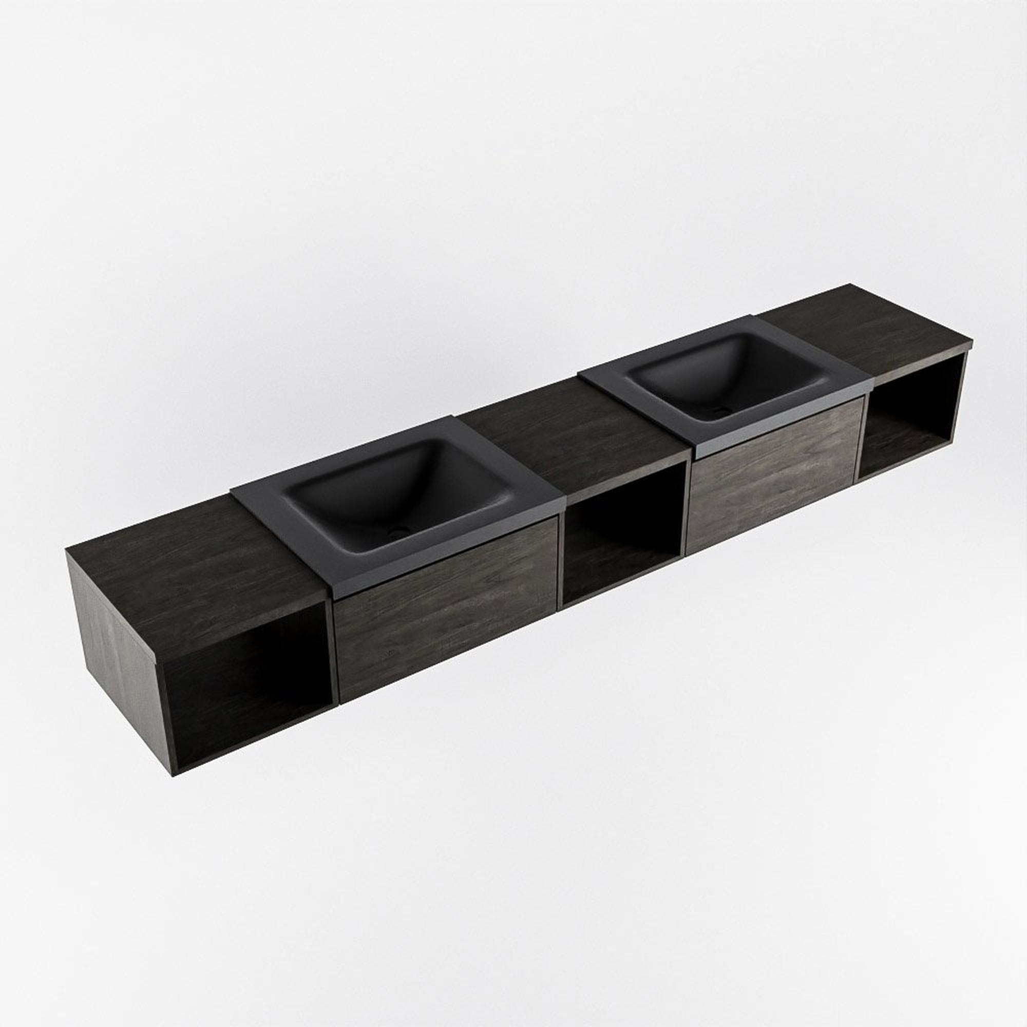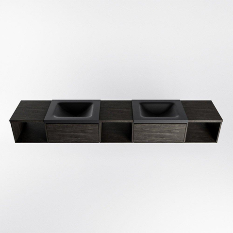 MONDIAZ BUKLA 240cm badmeubel met open module 40 L+M+R kleur Dark Brown met 2 lades. Wastafel CLOUD dubbel 0 kraangaten kleur Urban.