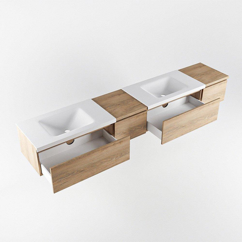MONDIAZ BUKLA 240cm badmeubel met module 40 links kleur Washed Oak met 4 lades. Wastafel CLOUD dubbel 0 kraangaten kleur Talc.
