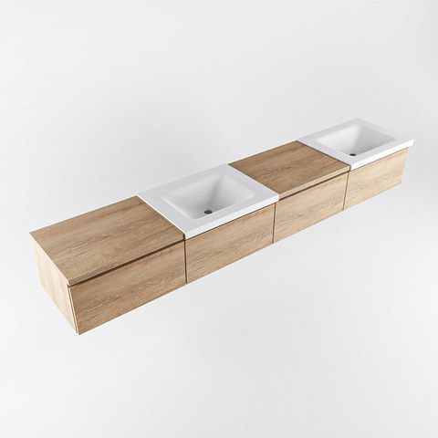 MONDIAZ BUKLA 240cm badmeubel met module 60 links kleur Washed Oak met 4 lades. Wastafel CLOUD dubbel 0 kraangaten kleur Talc.