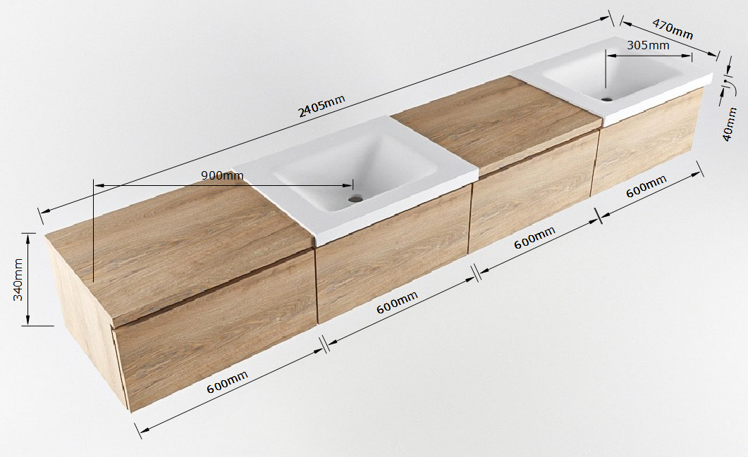 - 240cm badmeubel met module 60 rechts