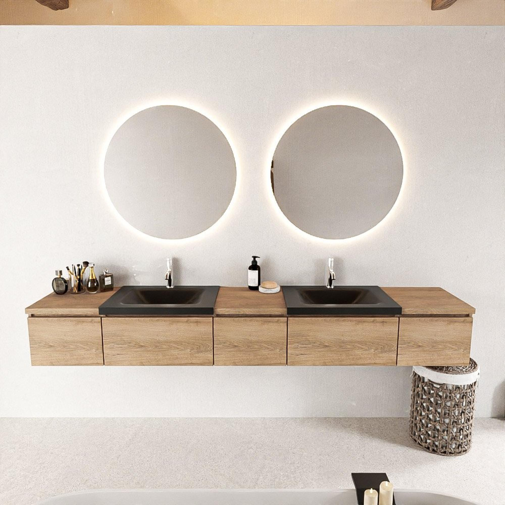 Naast zijn esthetische waarde is dit badmeubel ook uiterst praktisch in gebruik. De 5 lades bieden voldoende opbergruimte voor al je toiletartikelen en handdoeken, waardoor je badkamer netjes en georganiseerd blijft. De dubbele wastafel met 2 kraangaten maakt het gemakkelijk om 's ochtends samen met je partner tegelijkertijd je tanden te poetsen, waardoor tijd wordt bespaard en het ochtendritueel soepeler verloopt.