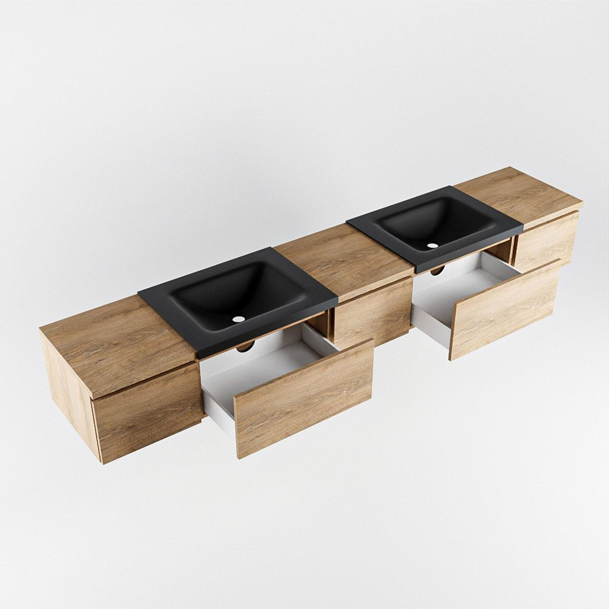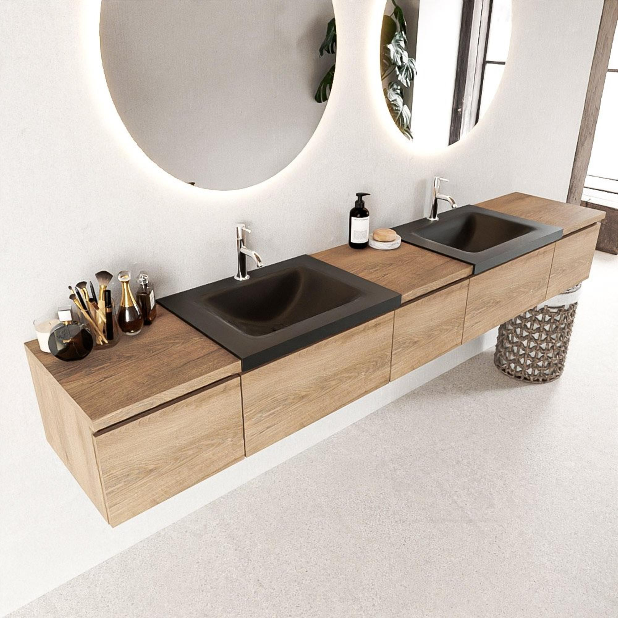 MONDIAZ BUKLA 240cm badmeubel met module 40 kleur Washed Oak met 5 lades. Wastafel CLOUD dubbel 2 kraangaten kleur Urban.