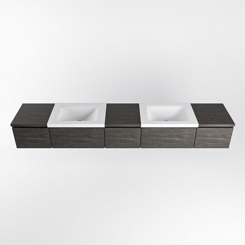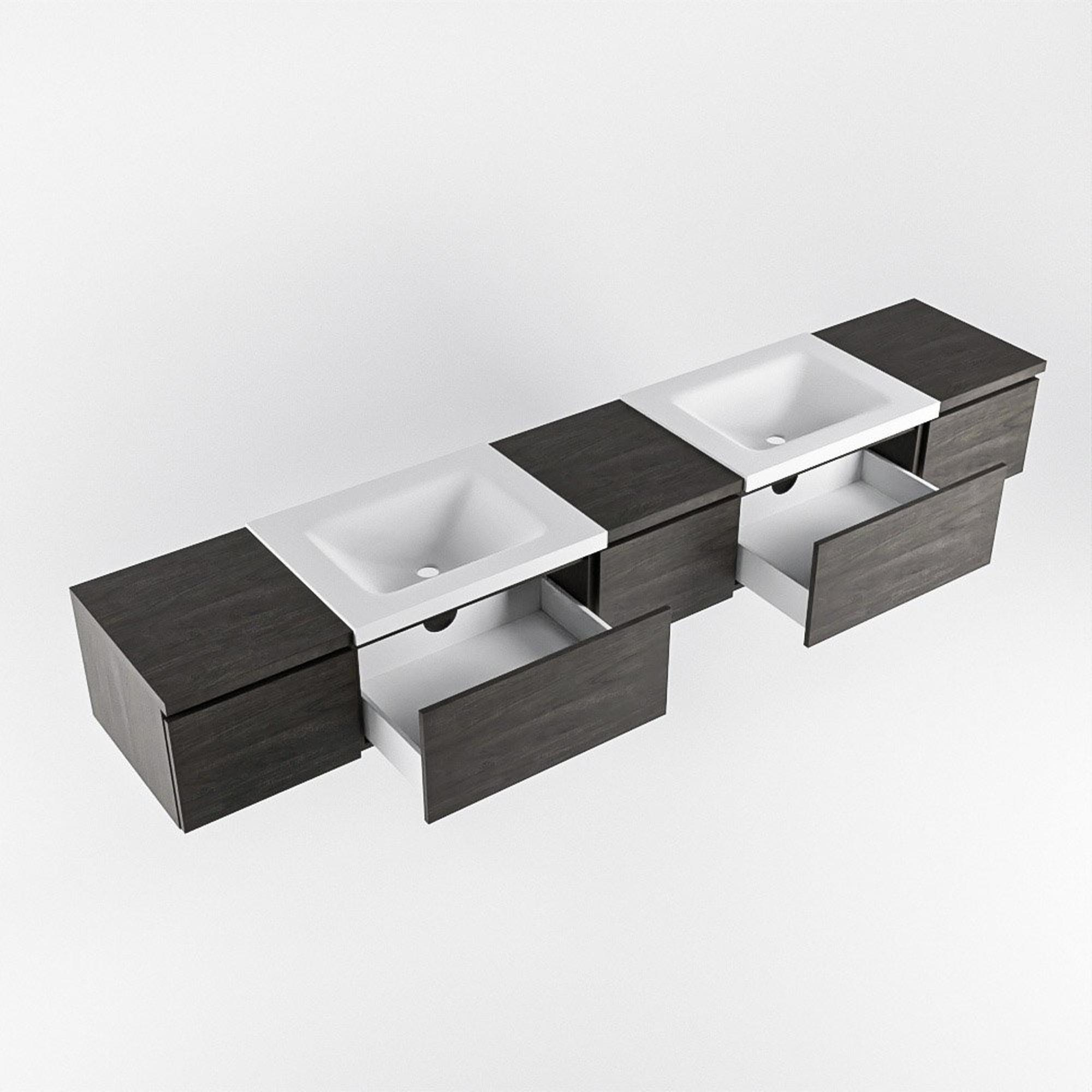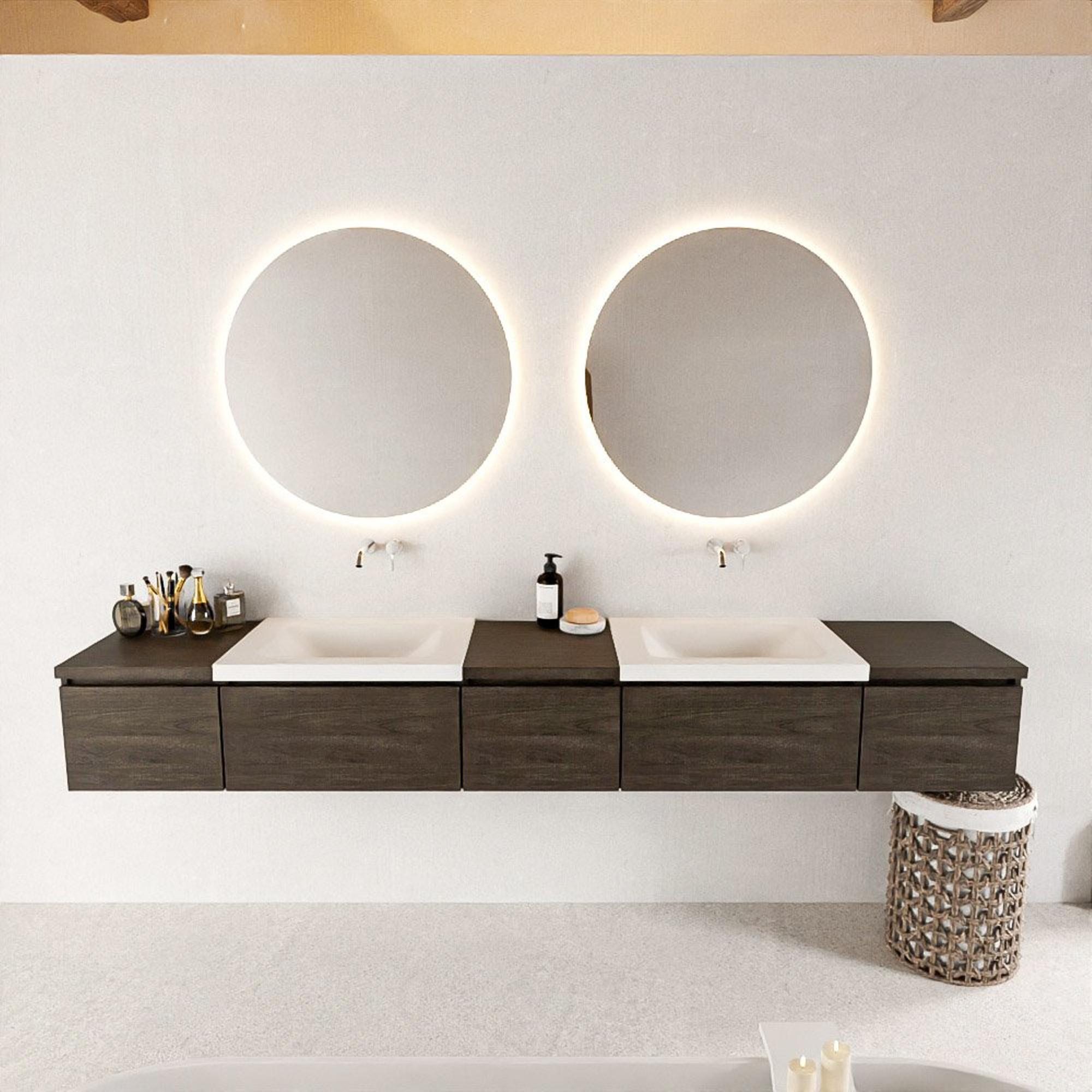 MONDIAZ BUKLA 240cm badmeubel met module 40 kleur Dark Brown met 5 lades. Wastafel CLOUD dubbel 0 kraangaten kleur Talc.