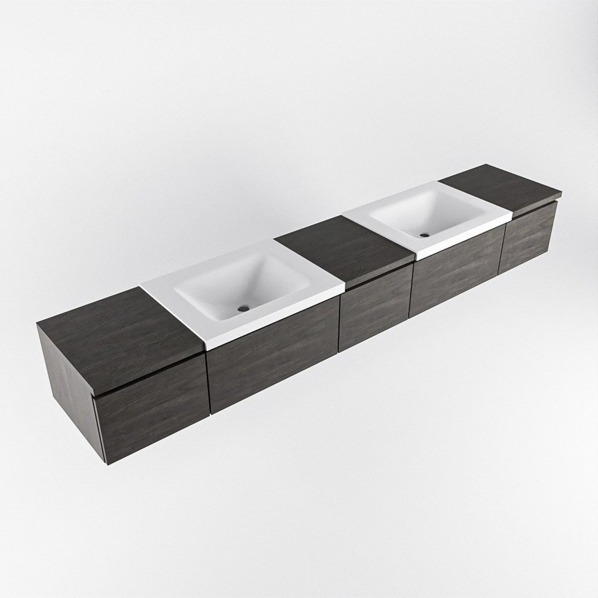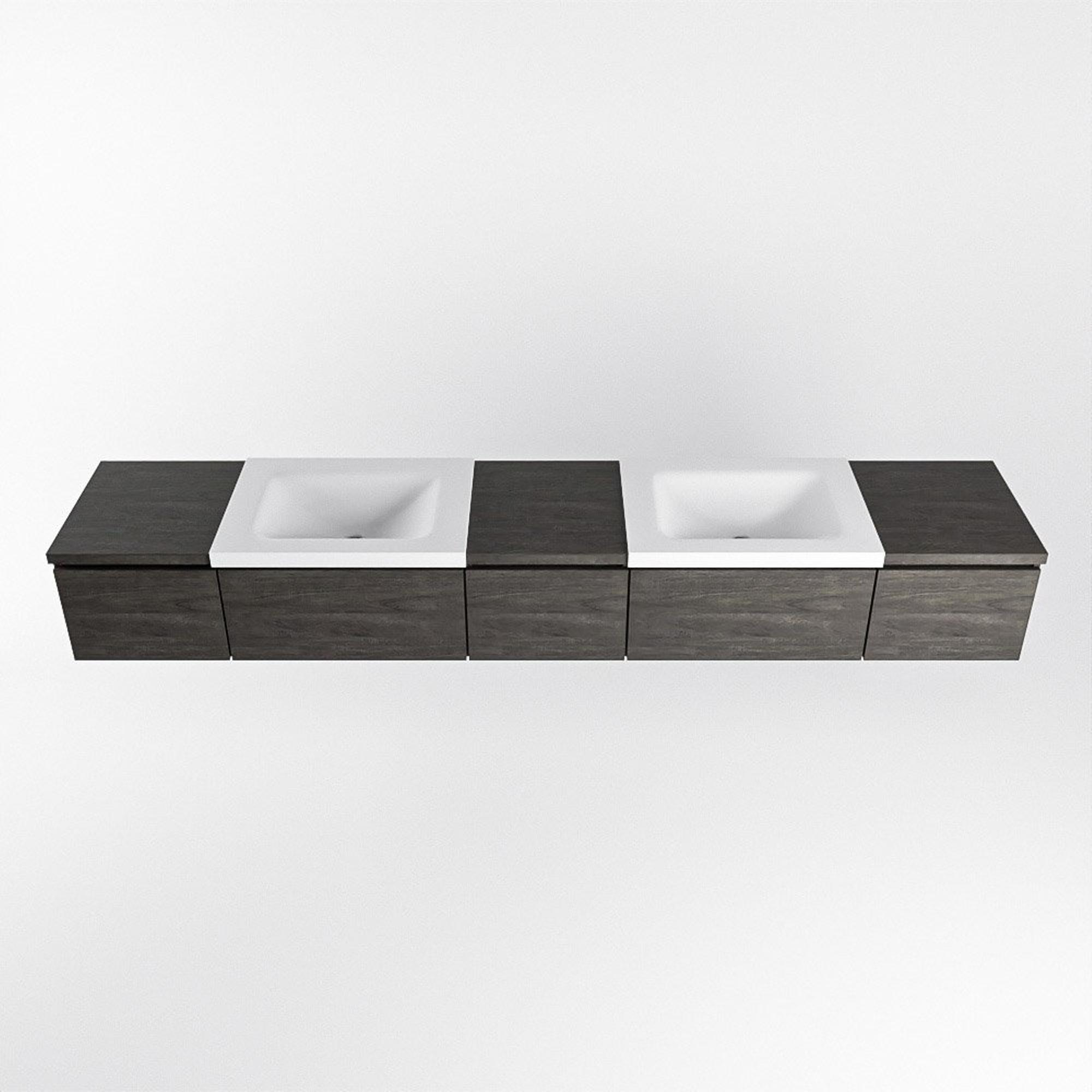 MONDIAZ BUKLA 240cm badmeubel met module 40 kleur Dark Brown met 5 lades. Wastafel CLOUD dubbel 2 kraangaten kleur Talc.