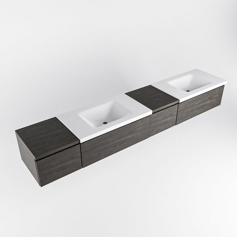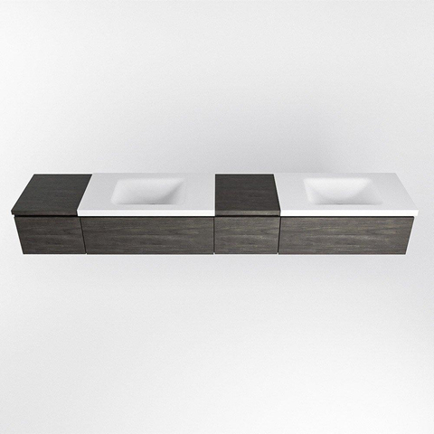 MONDIAZ BUKLA 240cm badmeubel met module 40 rechts kleur Dark Brown met 4 lades. Wastafel CLOUD dubbel 2 kraangaten kleur Talc.