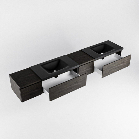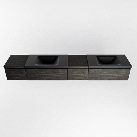 MONDIAZ BUKLA 240cm badmeubel met module 40 rechts kleur Dark Brown met 4 lades. Wastafel CLOUD dubbel 0 kraangaten kleur Urban.