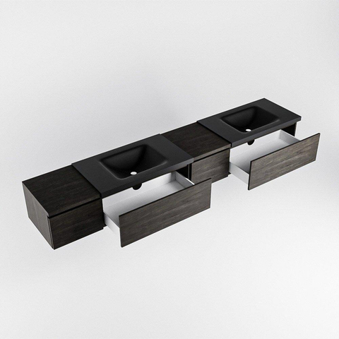 MONDIAZ BUKLA 240cm badmeubel met module 40 rechts kleur Dark Brown met 4 lades. Wastafel CLOUD dubbel 2 kraangaten kleur Urban.