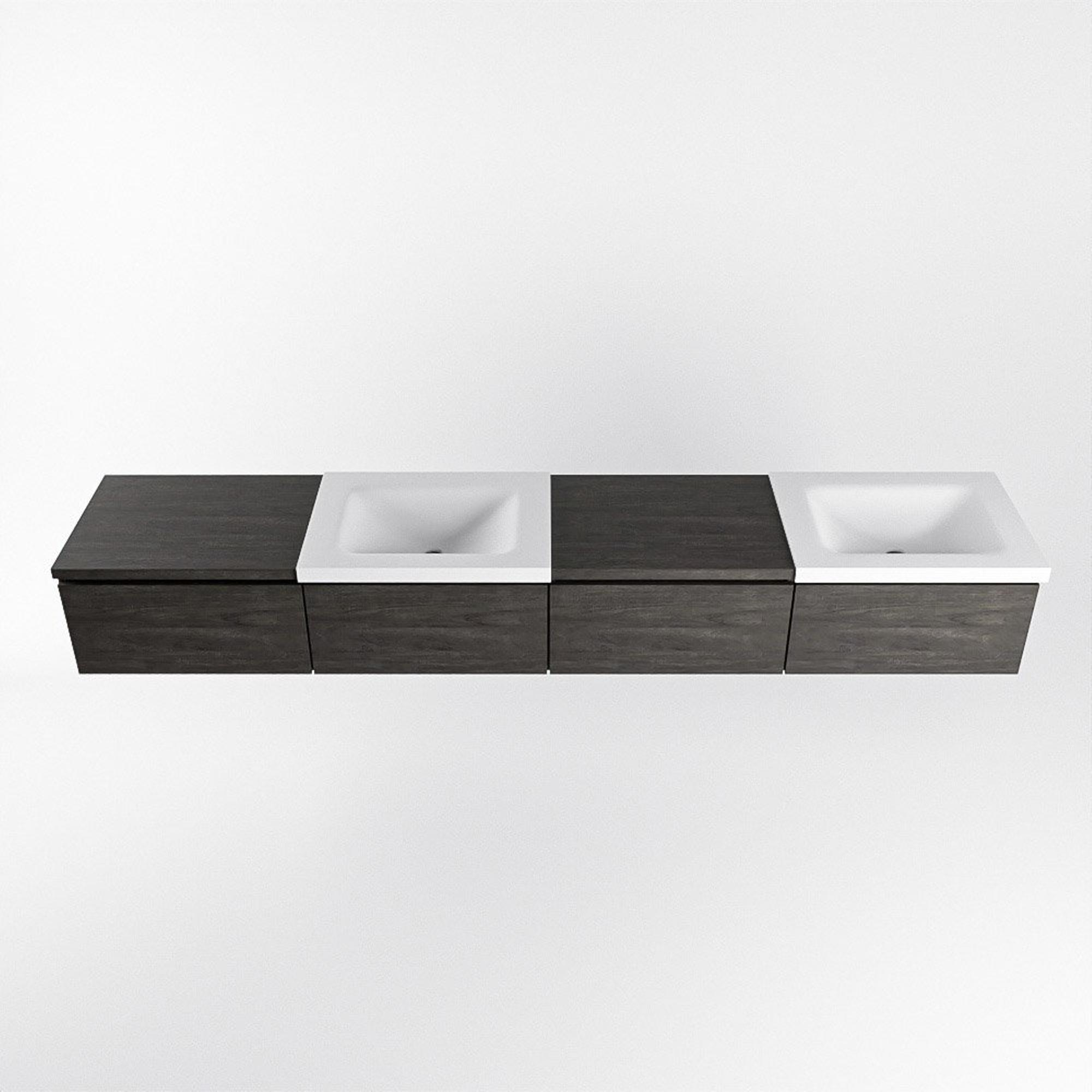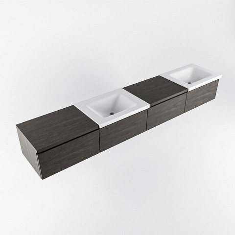 MONDIAZ BUKLA 240cm badmeubel met module 60 links kleur Dark Brown met 4 lades. Wastafel CLOUD dubbel 2 kraangaten kleur Talc.