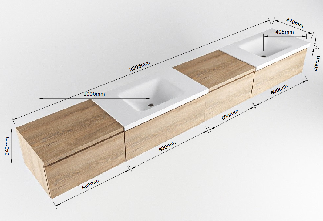 - 280cm badmeubel met module