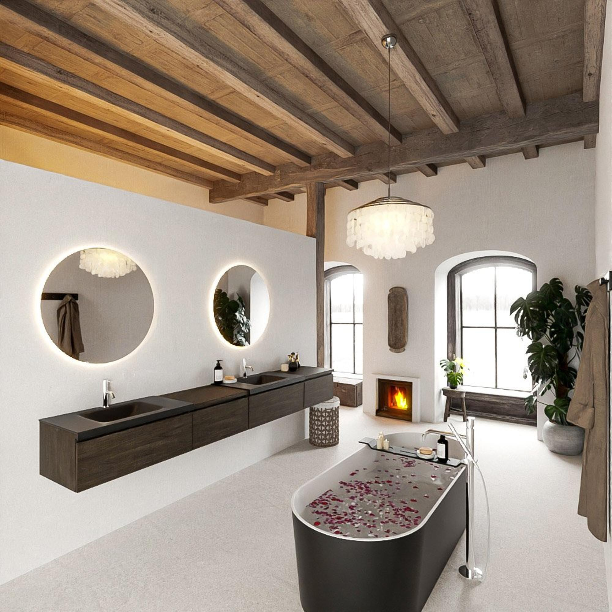 - Kleur: Dark Brown (badmeubel), Urban (wastafel)