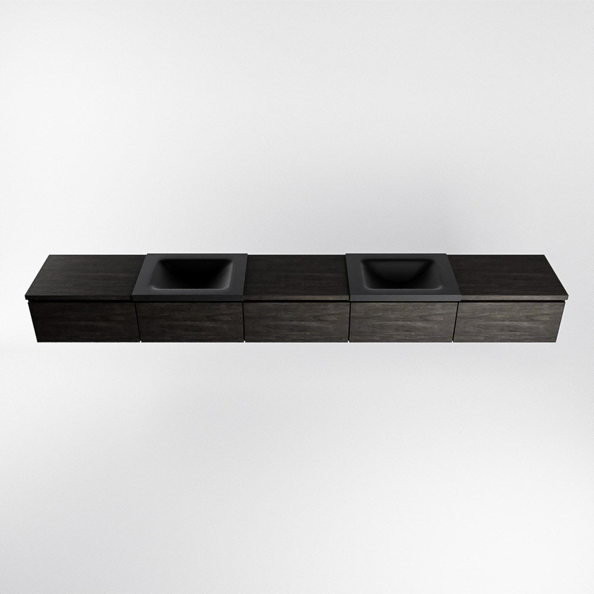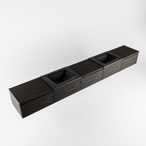MONDIAZ BUKLA 300cm badmeubel met module 60 kleur Dark Brown met 5 lades. Wastafel CLOUD dubbel 0 kraangaten kleur Urban.