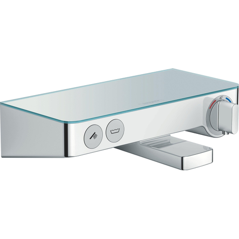 Met de ShowerTablet Select 300 opbouwthermostaat voor het bad wordt het bad snel en eenvoudig mooier. Modern, rechtlijnig design en de praktische planchet van gespiegeld veiligheidsglas (breedte 300 mm) voldoen aan de hoogste eisen.