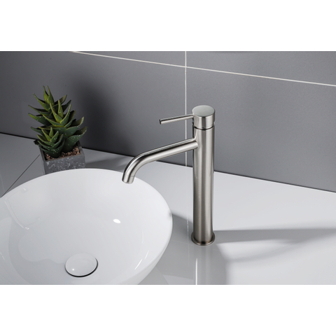 Met zijn verhoogde ontwerp straalt de Fortifura Calvi Wastafelkraan elegantie uit. De slanke vormgeving en geborsteld roestvrijstalen afwerking geven een gevoel van klasse en verfijning. Deze kraan voegt een vleugje luxe toe aan je badkamer en is een blikvanger die zowel functioneel als esthetisch aantrekkelijk is.