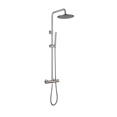 De Fortifura Calvi Thermostatische Regendoucheset is een prachtige toevoeging aan elke badkamer. Met een elegante 25cm ronde hoofddouche en een handige staafhanddouche, biedt deze set zowel stijl als functionaliteit. Het geborsteld RVS PVD afwerking geeft een moderne uitstraling aan de doucheset, waardoor het een blikvanger wordt in de ruimte. Geniet van een luxueuze douche-ervaring met deze hoogwaardige set die zowel esthetisch als praktisch is.