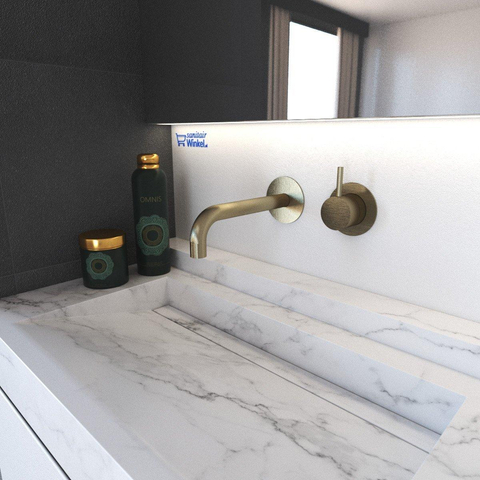 De Cobber wastafelkraan is een inbouwkraan voorzien van het 3+3 inbouwsysteem. Door het 3+3 inbouwsysteem is het mogelijk om de wandkraan op drie verschillende manieren te plaatsen. Hierdoor kiest u eenvoudig of u de bediening links, rechts of boven de uitloop plaatst.