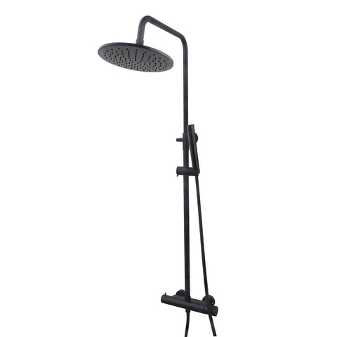 Wiesbaden Caral douche opbouwset met thermostatische mengkraan mat zwart SHOWROOMMODEL
