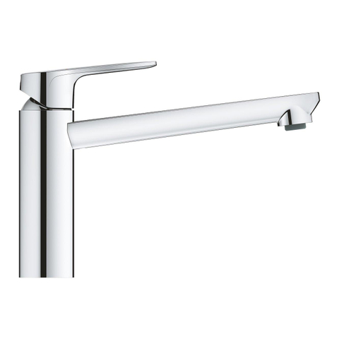 ---------- Geniet elke dag van het zuiverste water uit de kraan met de GROHE BauEdge keukenmengkraan. De middelhoge uitloop en de stevige hendel zorgen voor extra gebruiksgemak in de keuken. Het soepele draaimechanisme draai je moeiteloos 140˚ waardoor je grote pannen en ketels zo met water hebt gevuld. Daarbij zorgt de GROHE Longlife keramische cartouche dat je de waterstroom en temperatuur nauwkeurig kunt afstellen. Het water uit keukenkraan is een ideale dorstlesser en gegarandeerd 100% lood- en nikkelvrij. De keukenmengkraan is een echte blikvanger in de keuken en blijft mooi van glans door de duurzame GROHE Long-Life chroomafwerking. Meer dan een zachte doek heeft deze onderhoudsvriendelijke kraan niet nodig. En is de mousseur aan vervanging toe of wil je deze extra reinigen? Dan kun je de mousseur eenvoudig losschroeven met een muntje. Ook de installatie van de keukenmengkraan is in een mum van tijd gebeurd met het handige GROHE FastFixation Plus systeem. Je hebt geen gereedschap nodig waardoor de installatietijd wordt verkort tot wel 70%. Voeg design en comfort toe aan je keuken met de GROHE BauEdge eengreeps keukenmengkraan. medium uitloop