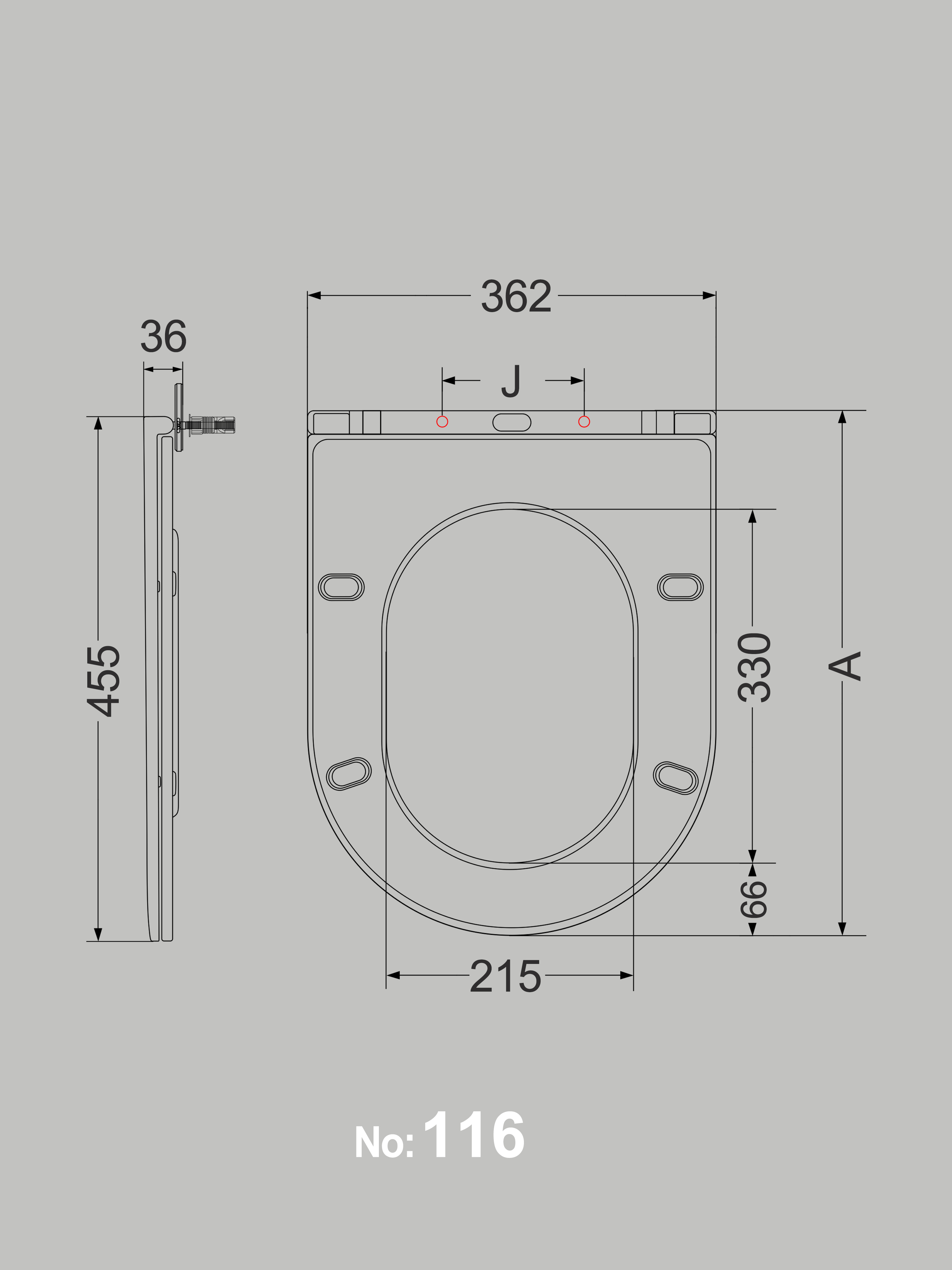 Deze wc-bril is 36.1 x 46.3 centimeter groot.