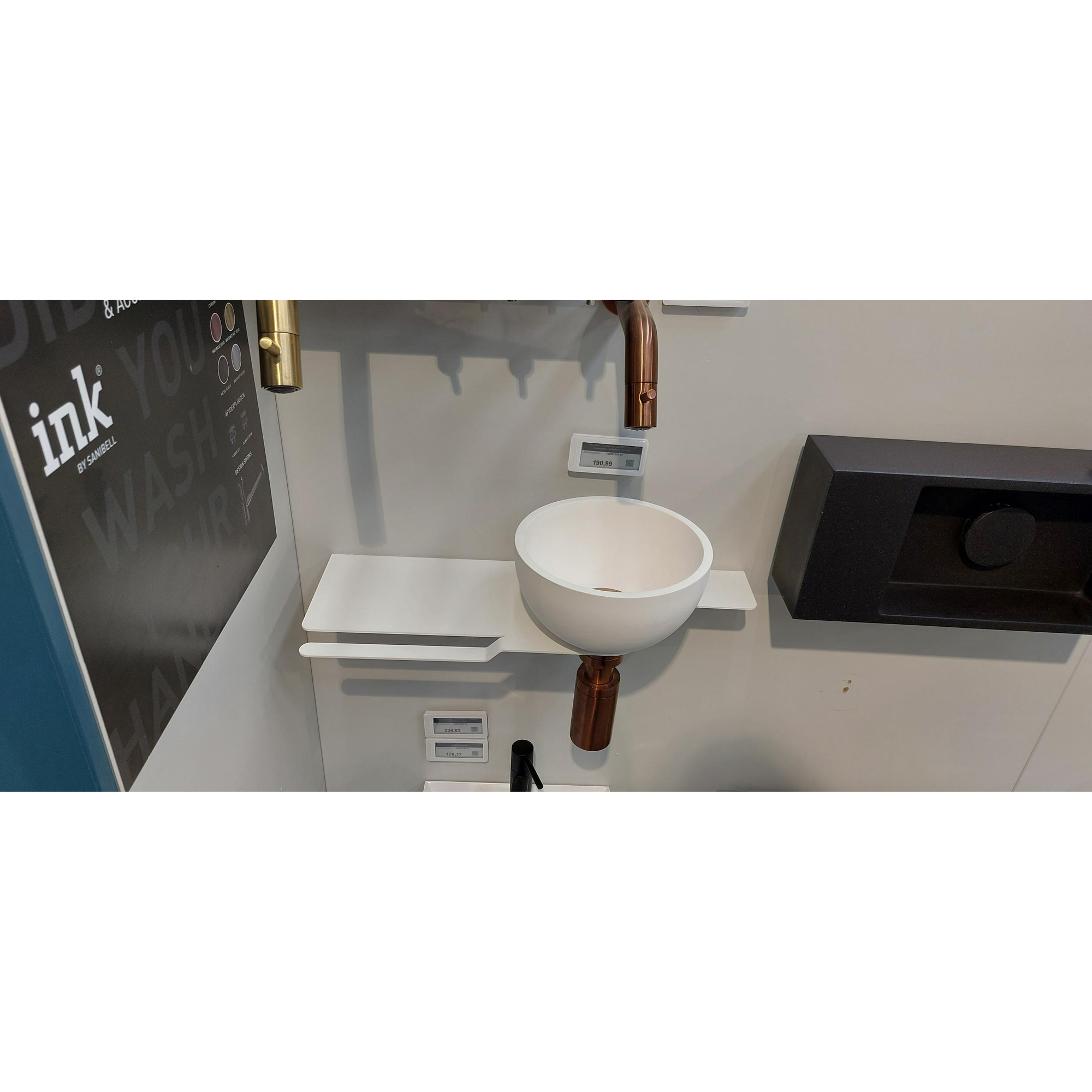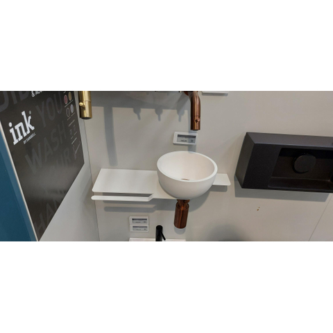 INK Mono L planchet - rechts staal wit mat met INK Jazz XS waskom mat wit en INK 3A Fonteinkraanset Mat rose goud SHOWROOMMODEL