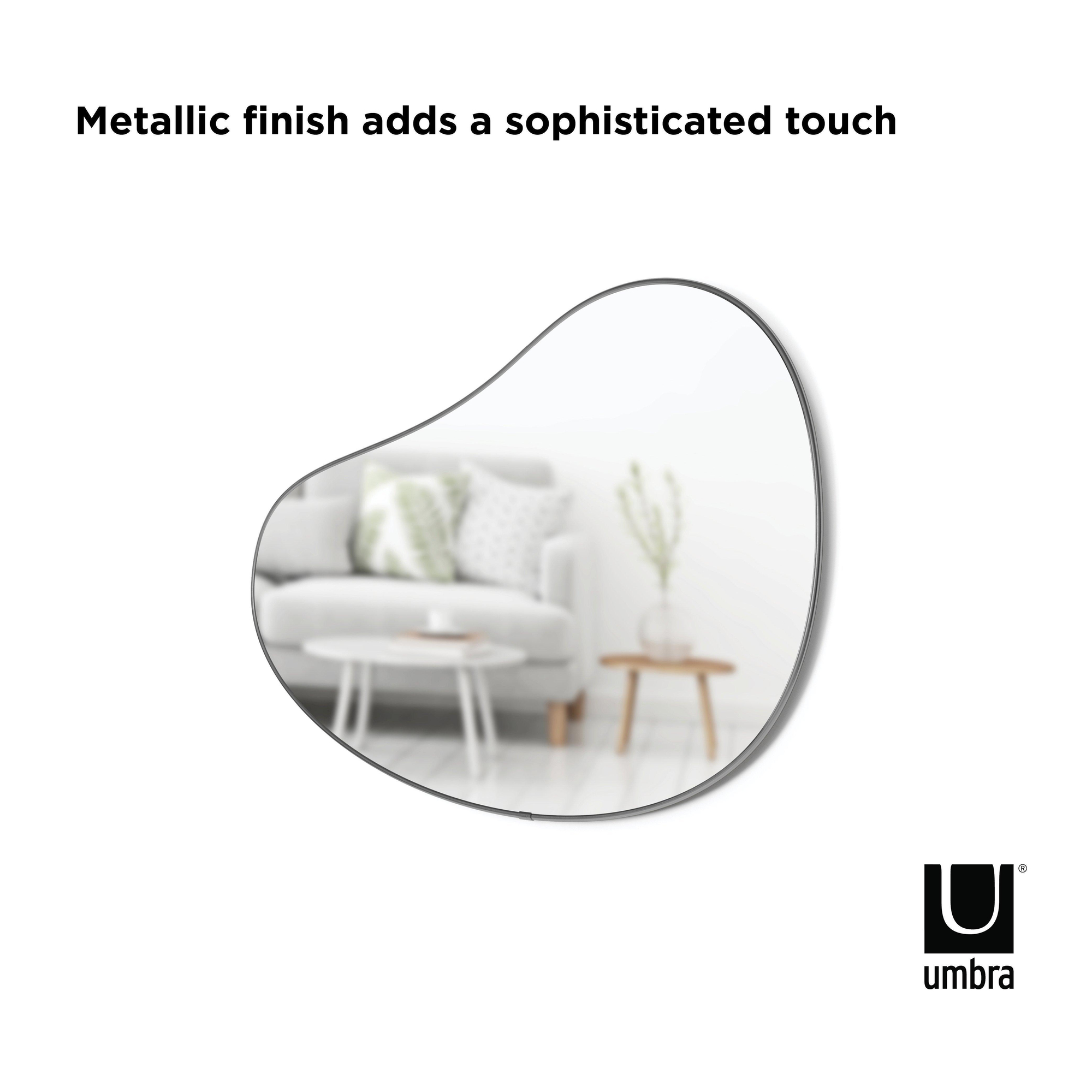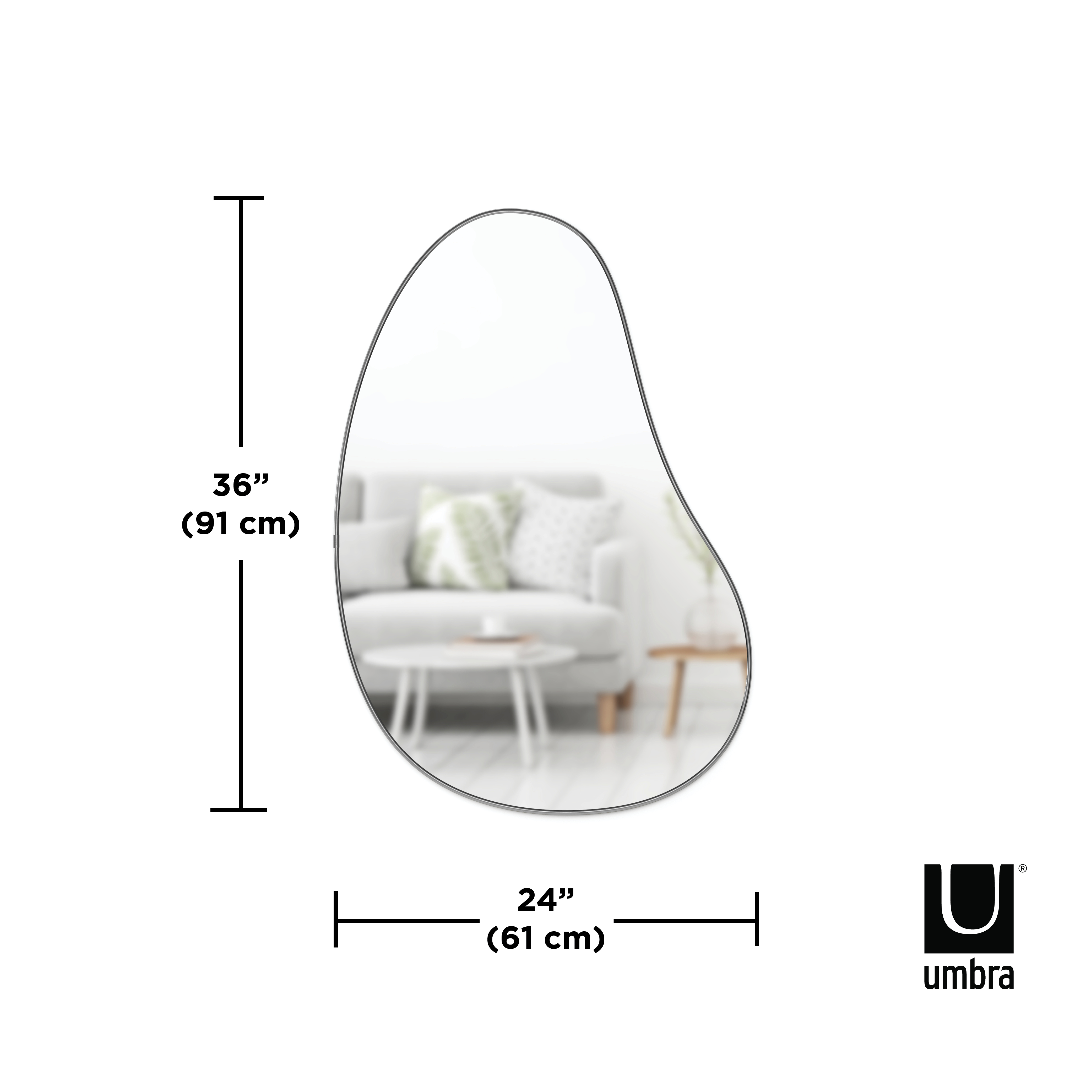 Hubba pebble maakt deel uit van de hubba-spiegelcollectie van umbra, met de hubba arched-spiegel, hubba-wandspiegel en hubba arched staande spiegel