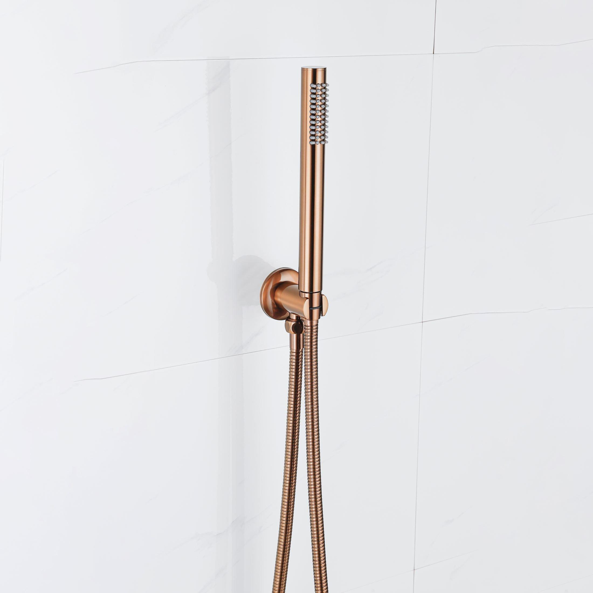 Fortifura Calvi Inbouw Regendoucheset - thermostatisch - wandarm - 30cm hoofddouche - staaf handdouche - gladde doucheslang - geborsteld koper PVD SW1412106