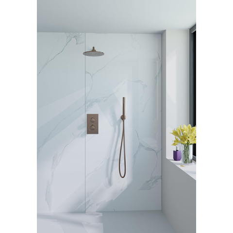 Fortifura Calvi Inbouw Regendoucheset - thermostatisch - wandarm - 30cm hoofddouche - staaf handdouche - gladde doucheslang - geborsteld koper PVD