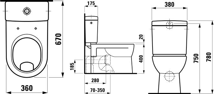 Laufen Pro closet voor duoblok 36x67x40cm vlakspoel afvoer PK. vario (70-350) 2 x 2 schroefgaten keramiek wit